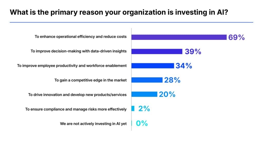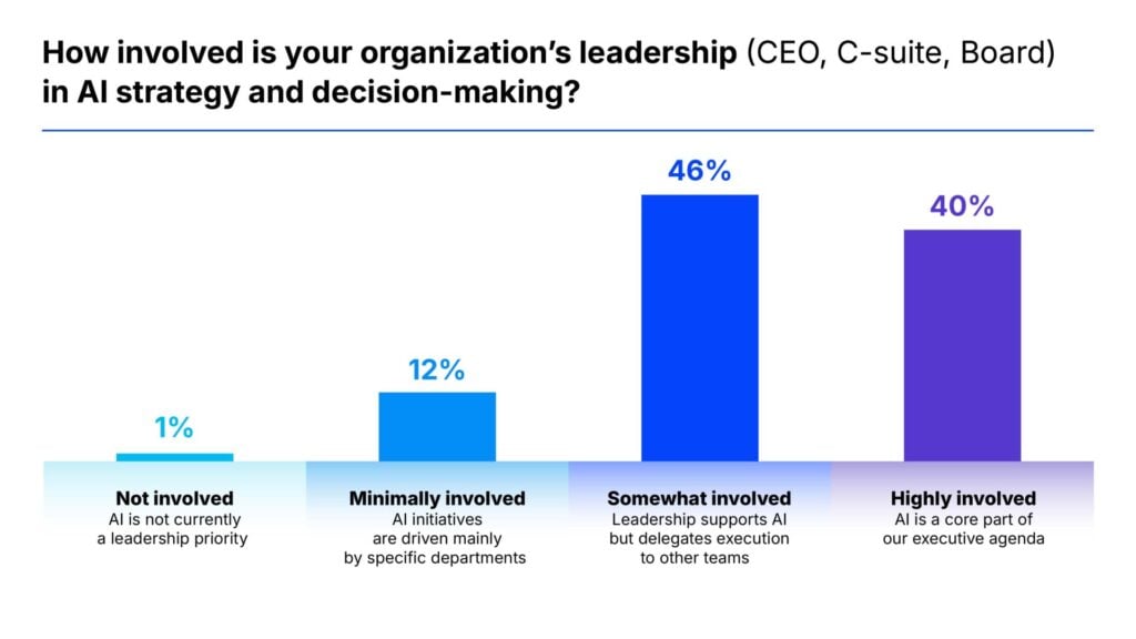 - Only 11% of organizations have dedicated AI leadership, such as a Chief AI Officer or an AI Strategy Team