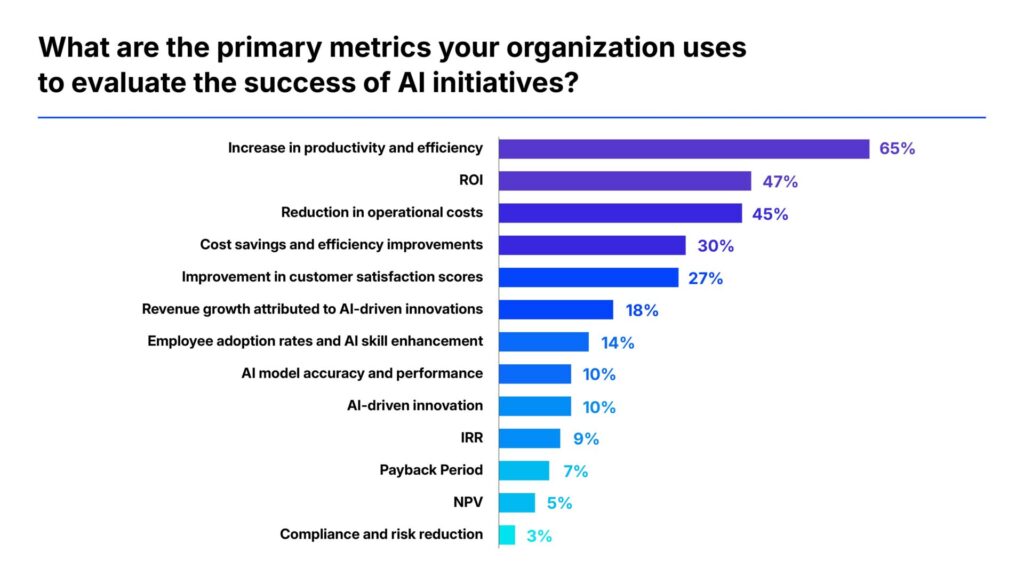 A further challenge identified is the way organizations measure AI success. Many continue to assess impact primarily through productivity gains and ROI, while factors such as customer experience, innovation, and regulatory compliance remain secondary.
