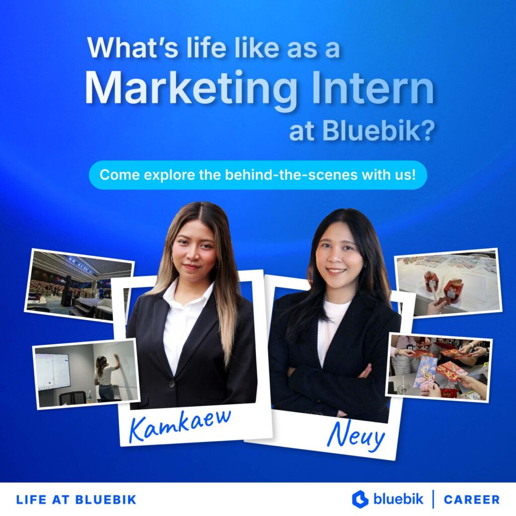 Kamkaew: I first learned about Bluebik through a senior from my faculty and later had the opportunity to speak with the recruitment team again at a Career Fair. It helped me gain a clearer understanding of how a Digital Transformation company does marketing. They focused on communicating the company’s expertise and building the brand’s credibility. I found this approach both interesting and challenging, which inspired me to pursue the opportunity to learn more and gain firsthand experience in this field.