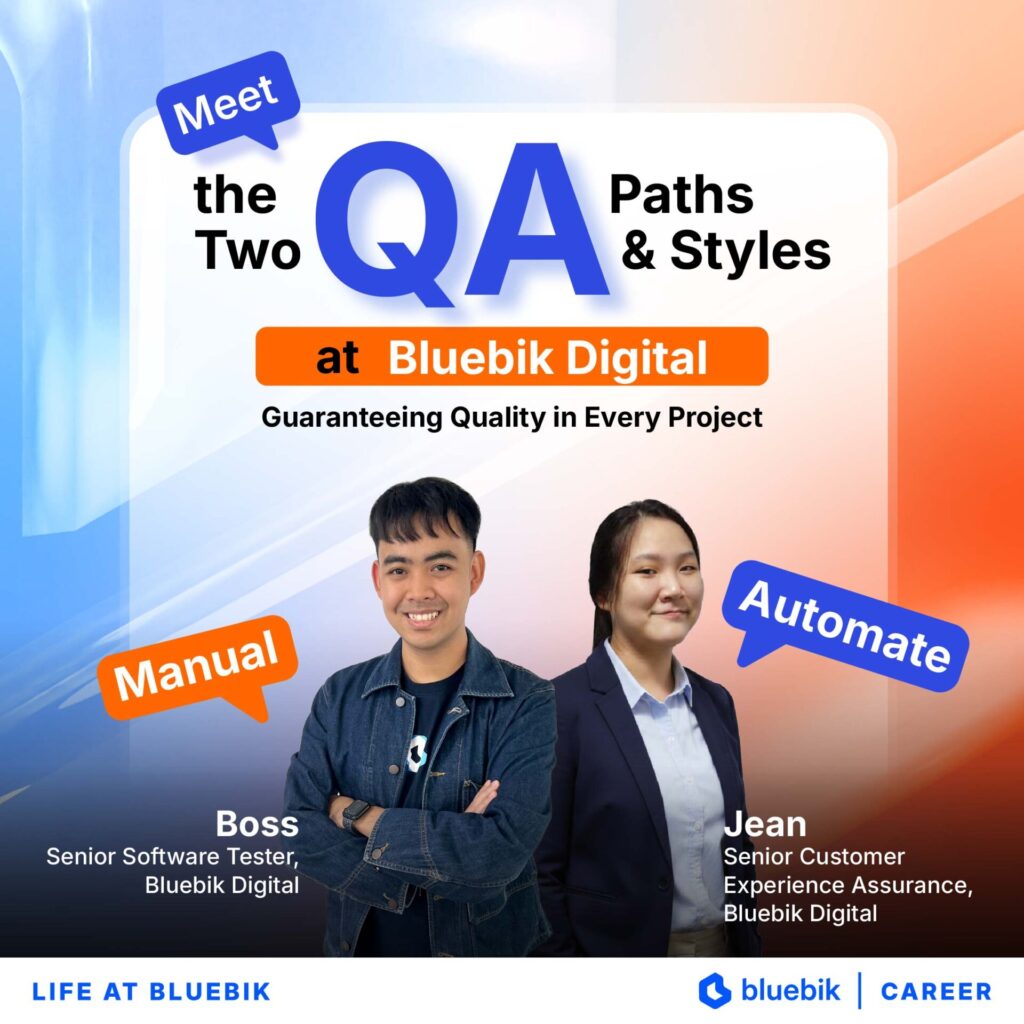 The presence of QA in a project ensures the delivered work is rated 100%, building client trust. In this article, we had the opportunity to sit down with two seasoned QA experts from Bluebik Digital: Boss, Senior Software Tester, and Jean, Senior Customer Experience Assurance. Bluebik Digital is the latest business unit under Bluebik Group, dedicated to elevating the quality of digital transformation services, including system development, applications, and solutions. Although Boss and Jean have different roles, both have broad QA experience in many industries.