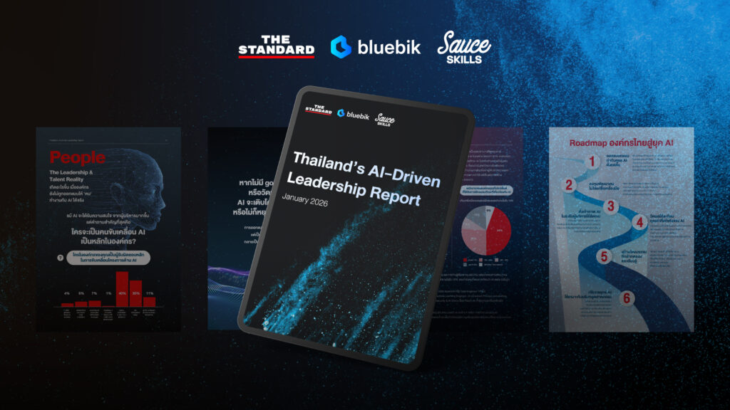 BLUEBIK Group ร่วมกับ THE STANDARD และ Sauce Skills เผยแพร่ Thailand’s AI-Driven Leadership Report รายงานเชิงลึกจากการถอดบทเรียนผู้บริหารระดับสูงกว่า 100 องค์กรไทย ครอบคลุมหลากหลายอุตสาหกรรม ตั้งแต่การเงิน การผลิต ค้าปลีก สุขภาพ เทคโนโลยี ไปจนถึงภาคบริการ เพื่อสำรวจว่า AI กำลังถูกนำมาใช้จริงในระดับองค์กรอย่างไร และเหตุใดหลายองค์กรยังไม่สามารถยกระดับ AI ไปสู่การใช้งานเชิงกลยุทธ์ได้