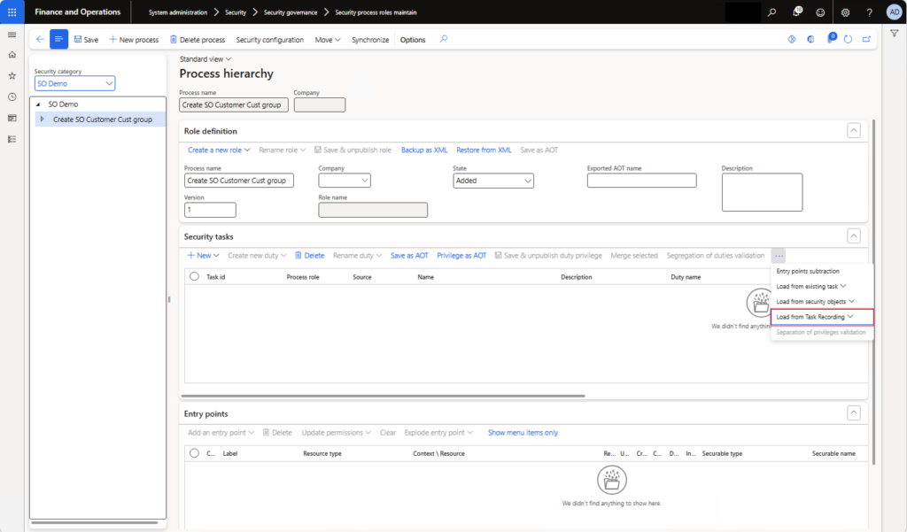 Microsoft Dynamics 365 Finance and Supply Chainให้คุณสามารถออกแบบ หน้าที่( Role) ที่เหมาะสม หรือทำการปรับแต่งหน้าที่การทำงาน( Role) ให้ตอบโจทย์การทำงานได้อย่างง่ายดาย เพียงบันทึก (Task Recorder) ขั้นตอนการทำงานและอัพโหลด (Load from task recording)  เข้าสู่ระบบ เพื่อสร้างหน้าที่การทำงาน ( Role) ได้อัตโนมัติ